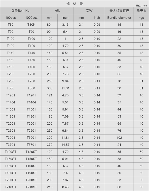 材 质:PA66(NYLON66),防火等级94V-2,不易老化,承受力强;