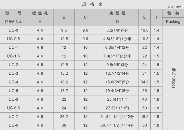 特征说明:材 质: PA66(本色),防火等级94V-2。使用方法:将电缆套入钮环中(如附图),再以螺丝固定。用 途:电机、电子、冷气配线之固定用。