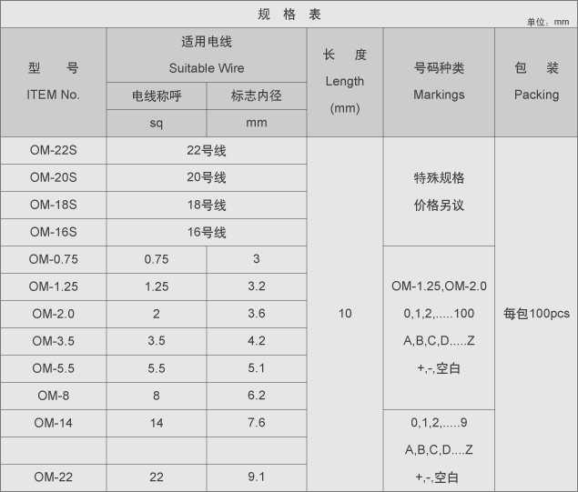 用 法:使用时将每个切离处轻轻剥下即可配线,连续式的O型胶管配线标志,乃是呈条状的胶管标志,每粒胶管标志间皆相连续不断,仅部份切离,使用时将每粒胶管标志在切离的部份轻轻剥下即可使用,每个胶管长度一律10mm长。